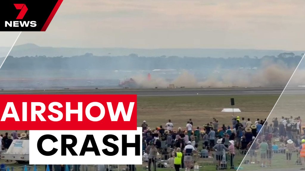 Thousands of spectators were stunned into silence when a major aviation event near Melbourne was brought to a sudden halt by a shocking plane crash on Friday afternoon.