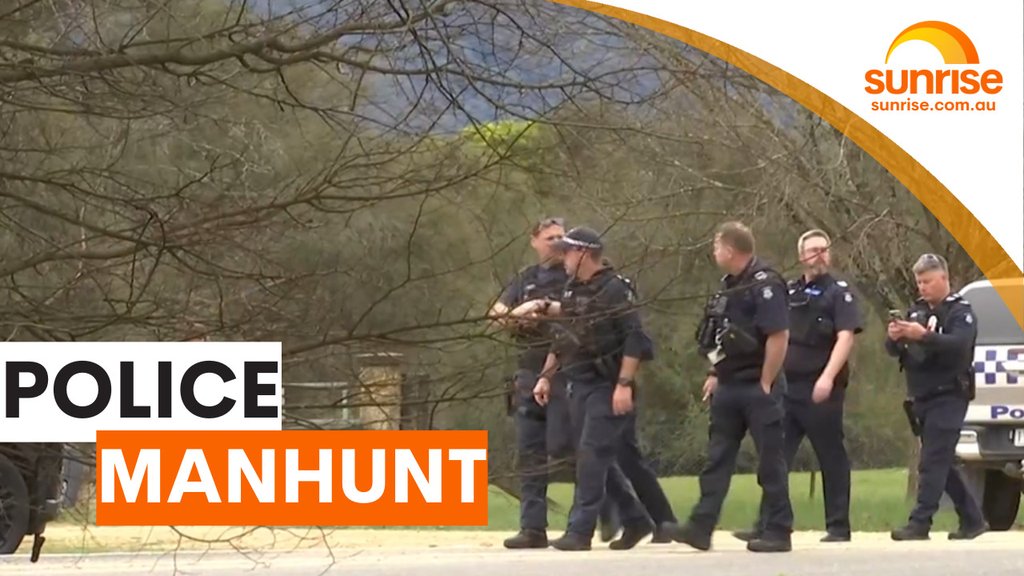 The rural Victorian town of Porepunkah, about 300km northeast of Melbourne, has spent the night in lockdown as police threw every available resource at tracking down the fugitive who killed two of their own and seriously injured a third.