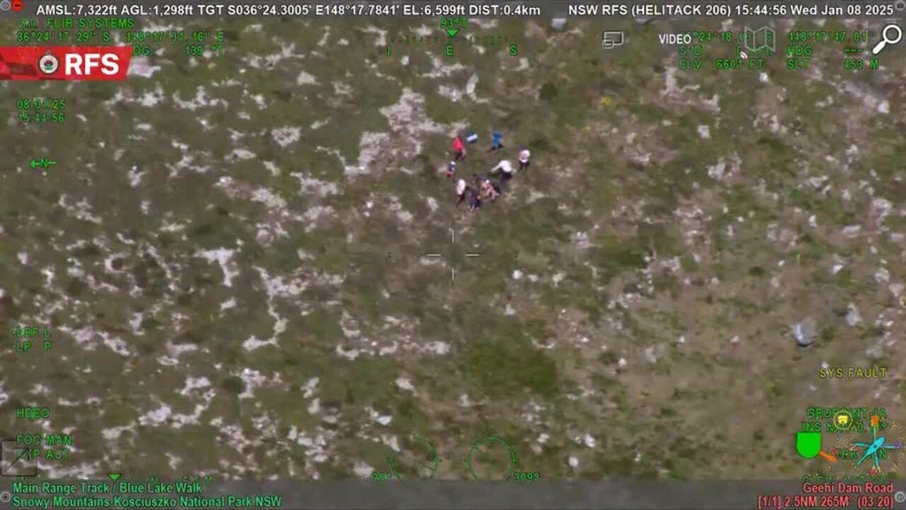 The NSW Rural Fire Service captured the moment Mr Nazari waved at the group of hikers who heard him, before being united atop a mountain, and then sitting together.