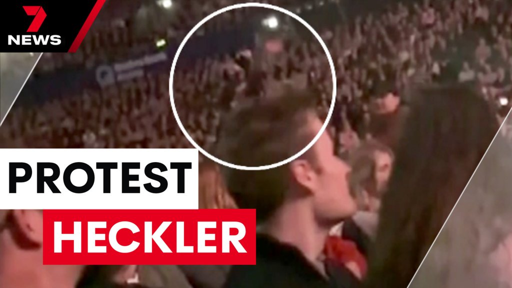 Jerry Seinfeld was heckled by an anti-Israel protester during his performance in Sydney at Qudos Bank Arena on Sunday night.