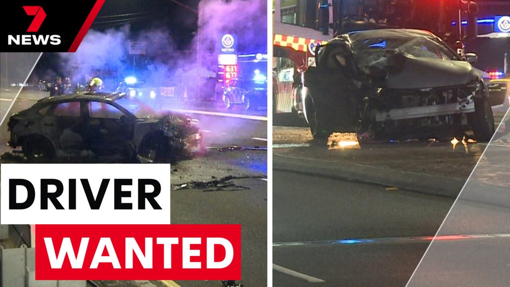 Three men are on the run while a fourth fights for his life following a fiery high-speed crash in Sydney’s southwest.