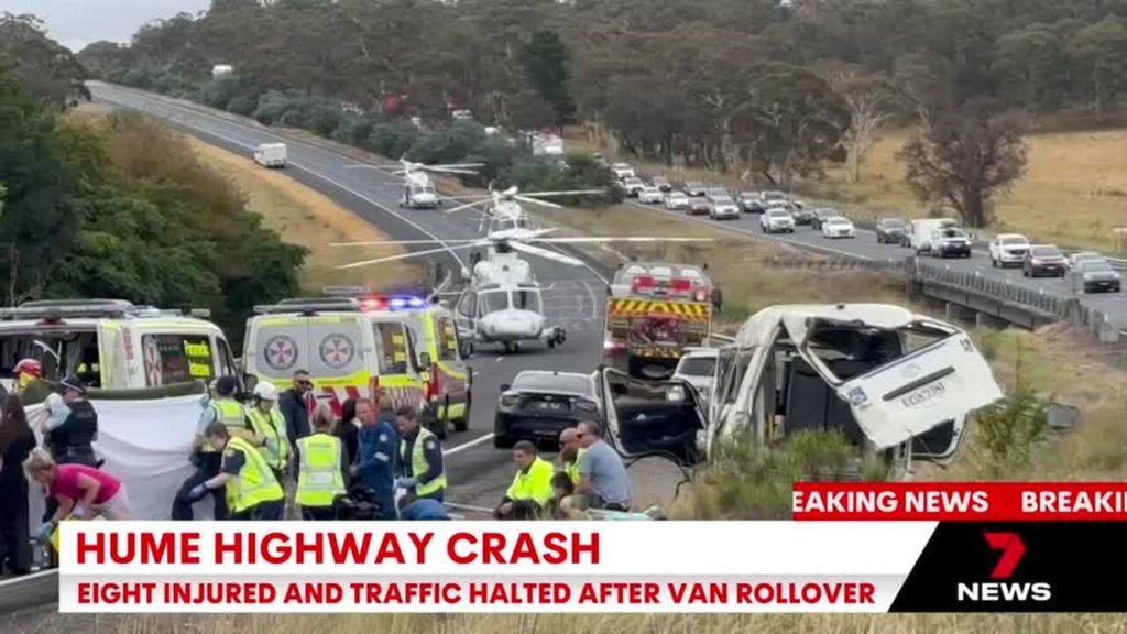 Eight people, including six children, injured in van rollover on Hume Hwy