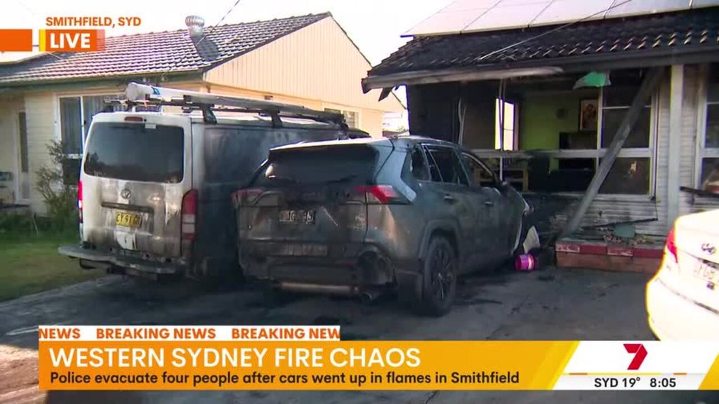 Smithfield: Western Sydney house damaged after Toyota RAV4 torched in driveway