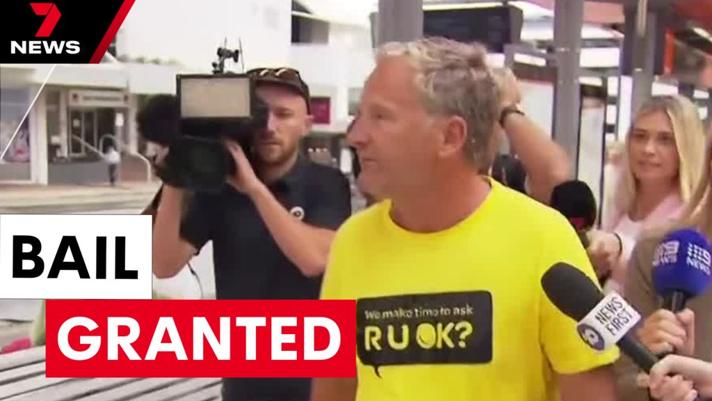 Barefoot and wearing a yellow “R U OK” t-shirt, he declined to comment when he left watchhouse.