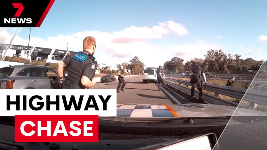 The chase escalated as Sunshine Coast police, backed by Polair, tracked the car onto the Sunshine Motorway.