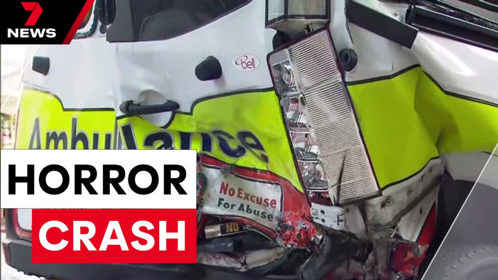 Tesla smashes into ambulance, injuring driver and two paramedics in Brisbane CBD