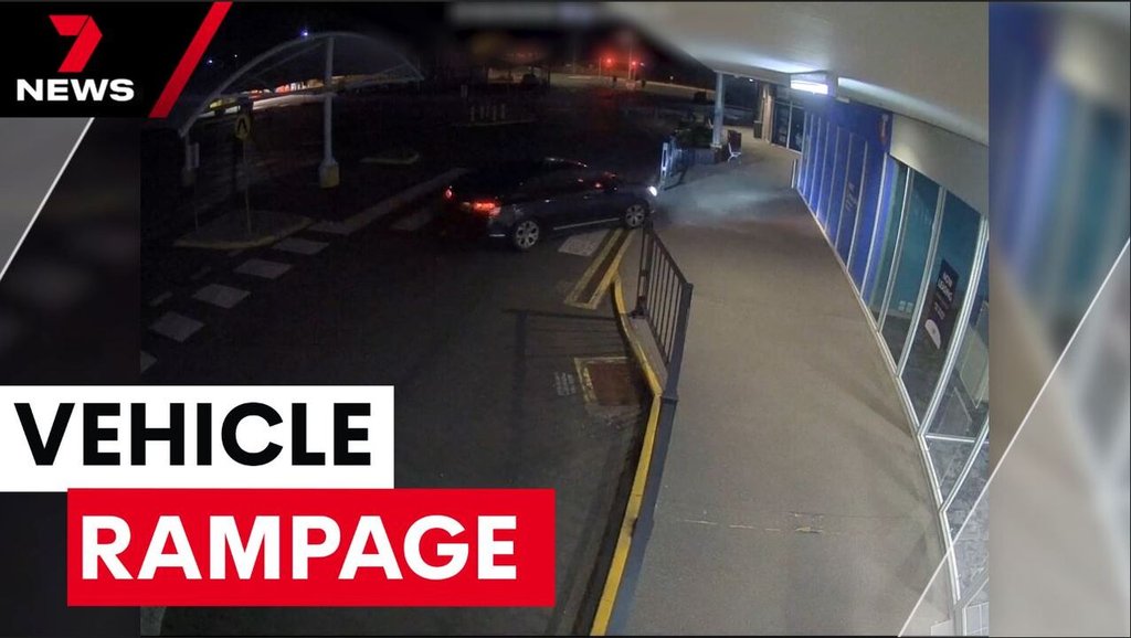 By continuing you agree to our Terms and Privacy Policy.CCTV footage shows the car smashing through glass doors and driving inside the shopping centre, causing significant damage.