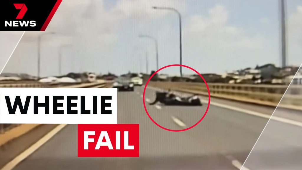 A motorbike rider has crashed while performing a wheelie on a Queensland road.