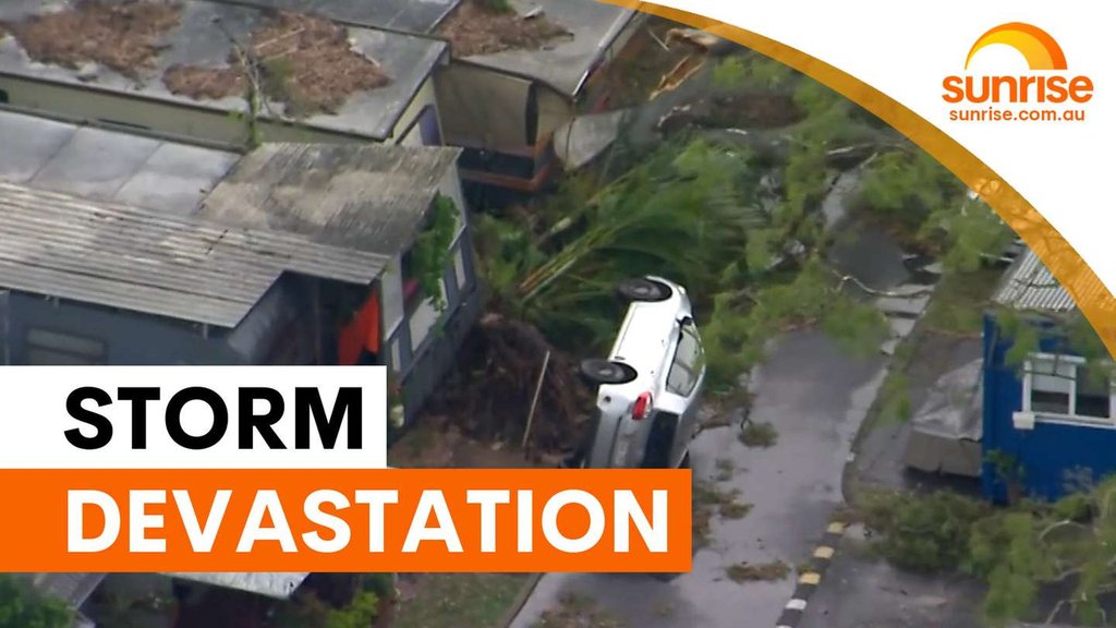 Giant hail and cyclonic winds swept Queensland’s southeast on Monday, leaving a wild trail of destruction that damaged homes, shut down public transport and closed schools.