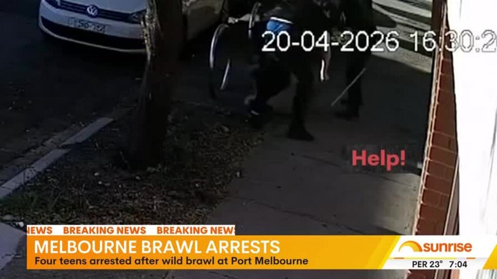 Four teenagers have been arrested after an alleged brawl between two males in broad daylight on an inner-city street in Melbourne.