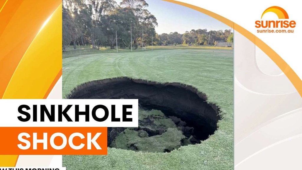 The ground at AJ Burkitt Reserve in Heidelberg, Melbourne’s northeast, collapsed in on late on Monday — leaving behind a hole about 10 metres wide and several metres deep.