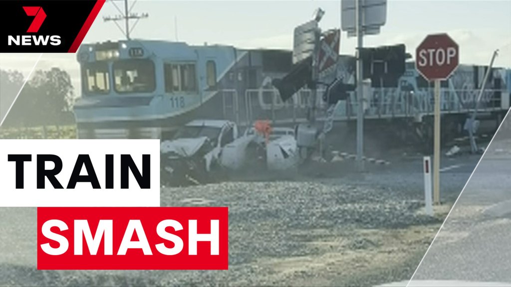 Car crash triggers wild smash as freight train ‘slices’ through stranded ute in Herne Hill, Perth