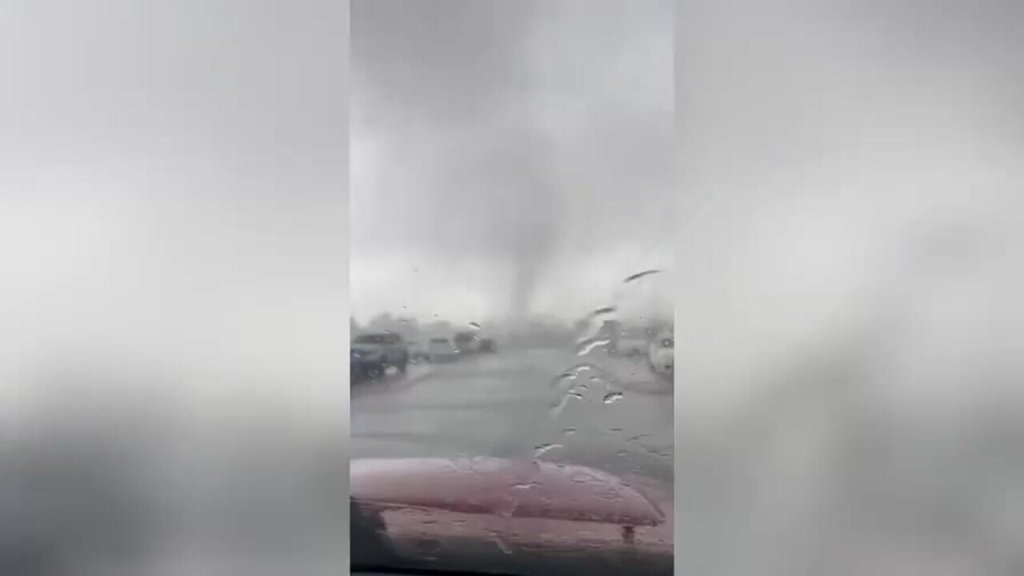 Footage of the moment the terrifying tornado ripped through the town shows metal, fencing and other debris swept into the winding spiral as it left houses and streets wrecked.