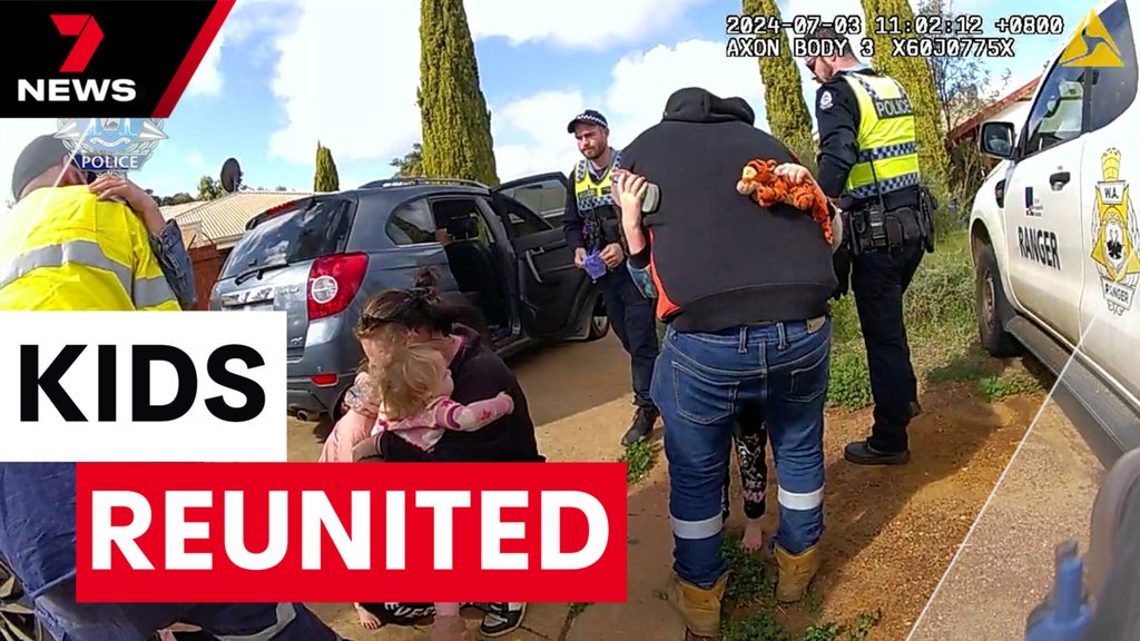 Police have released a photo of the moment the children were reunited with loved ones.