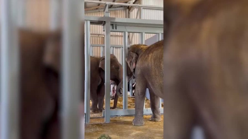 Permai has met her first new elephant friend at Monarto Safari Park, with heartwarming footage showing her locking trunks with her new neighbour Burma.