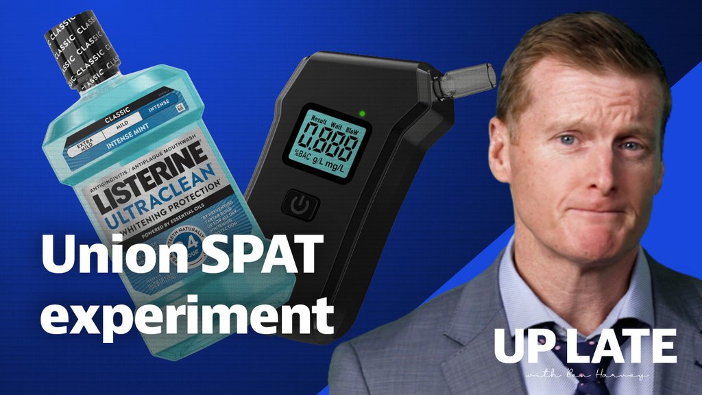 In tonight’s show, Ben Harvey puts Listerine to the test — will he fail an alcohol test? The Up Late experiment comes after a Union delegate was denied entry to BHP for being over the limit and blaming mouthwash.