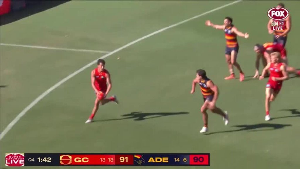 Gold Coast looked to have killed off the Crows when they kicked three goals clear again until John Noble’s unforced error in the centre of the ground led to Walker kicking his 650th AFL goal from the turnover.