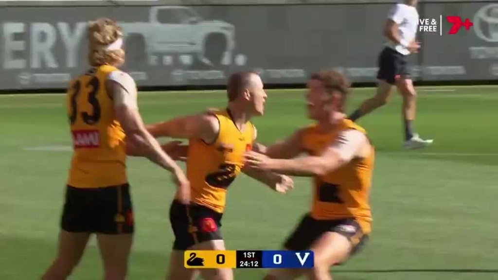 It kick-started an early ambush from the Sandgropers as Hogan followed Warner’s brilliance up by out-bodying Jacob Weitering in the goalsquare to add their second.