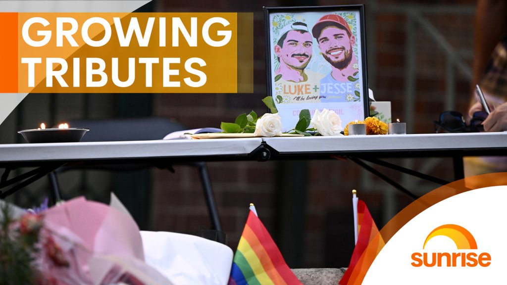 The pair were allegedly murdered within a kilometre of the parade’s Oxford Street route at a terrace in Paddington, where mourners left an AFL umpire’s guernsey and a scale-model Qantas plane amongst bouquets and commemorative notes.