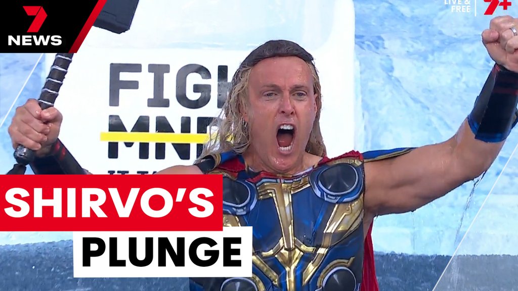 Channel 7 Sunrise host and former Olympic runner Matt Shirvington did his best to represent Chris Hemsworth in his iconic Marvel role of Thor but wasn’t provided the suit with in-built muscles.