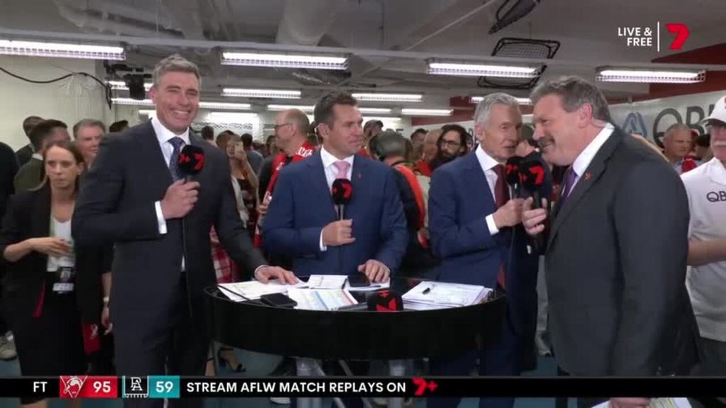 The Channel 7 commentator had no idea who he was really speaking to in the Swans’ rooms.
