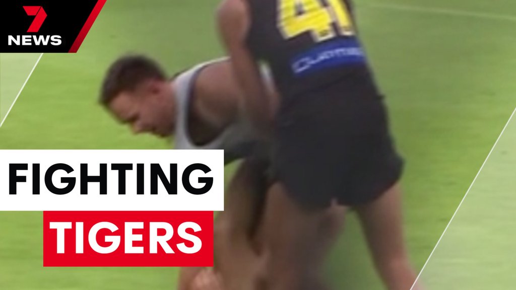 Cameras capture Richmond teammates Jayden Short and Rhyan Mansell in physical altercation