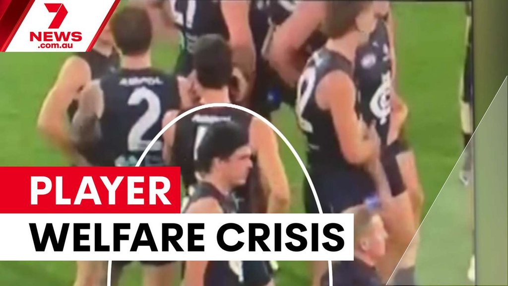 WATCH THE VIDEO ABOVE: Elijah Hollands struggles as Carlton monitors wellbeing concerns