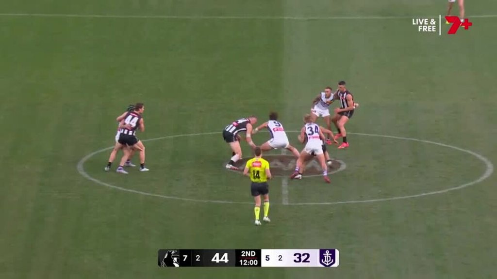 The third quarter was an arm wrestle as neither team could find space. But when Oscar McDonald missed Heath Chapman with a short pass while coming out of the backine, Collingwood made Fremantle pay from the next set of stoppages.