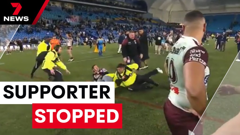 A frightening scenario has played out after Gold Coast’s upset win over Manly with a fan storming the field and grabbing Daly Cherry-Evans.