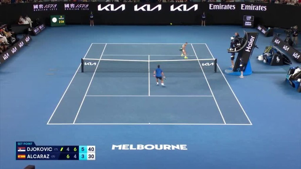 The legendary Serbian, 16 years Alcaraz’s senior, recovered from a set down to triumph 4-6 6-4 6-3 6-4 in an epic three-hour and 37-minute showdown on Rod Laver Arena.