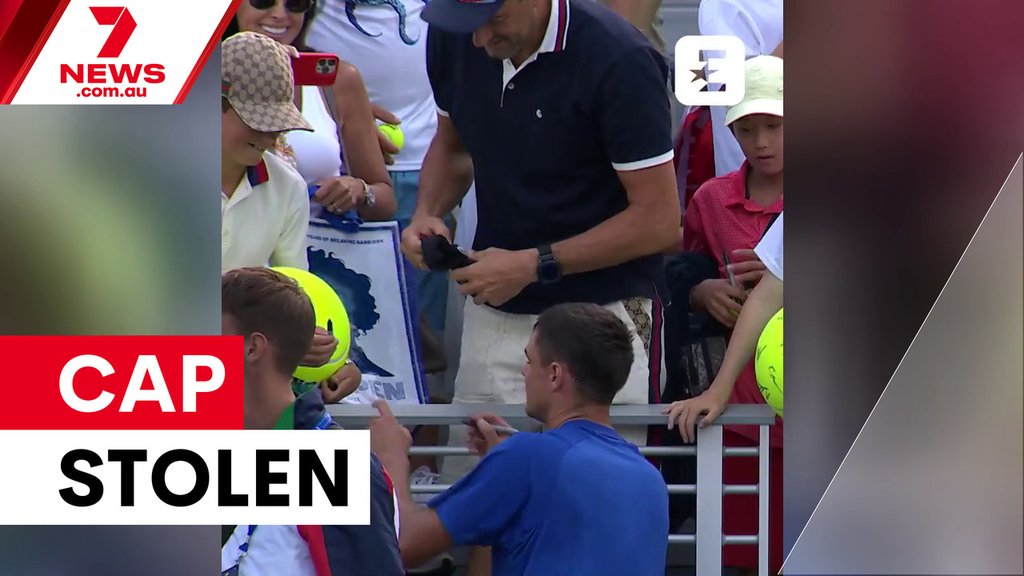 After the match, the young boy was waiting patiently for an autograph on his giant tennis ball when Majchrzak generously offered the cap on his head instead.
