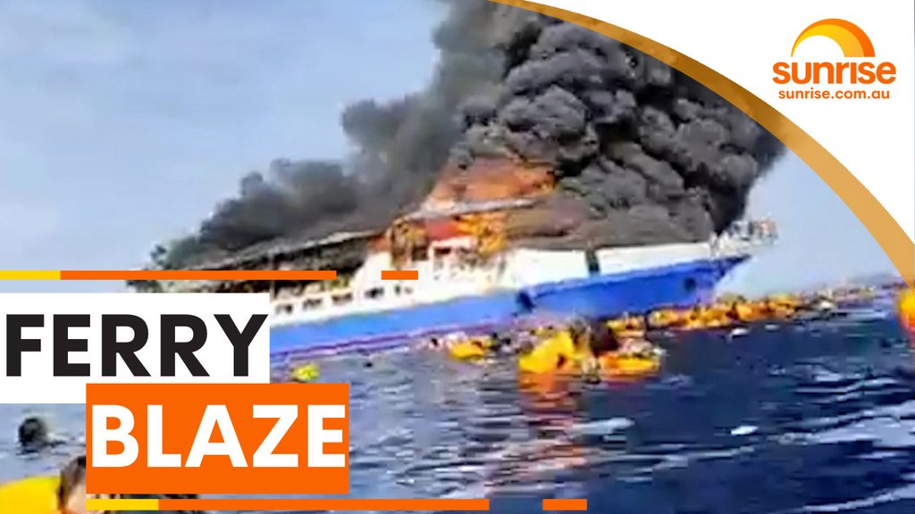 Photos and videos circulated on social media showed terrified passengers, mostly wearing life jackets, jumping into the sea as orange flames and black smoke billowed from the burning vessel.