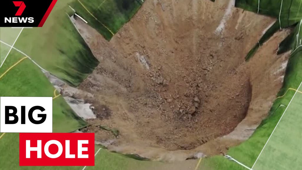 Terrifying moment massive sinkhole swallows soccer pitch in Illinois
