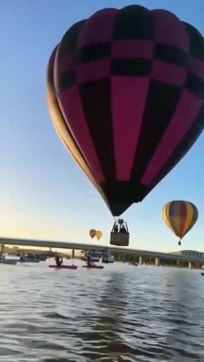 In hilarious footage posted online, Mr Perrin can be heard saying hello to the hot air balloon’s passengers, all waving back and laughing that they had ended up in his backyard.
