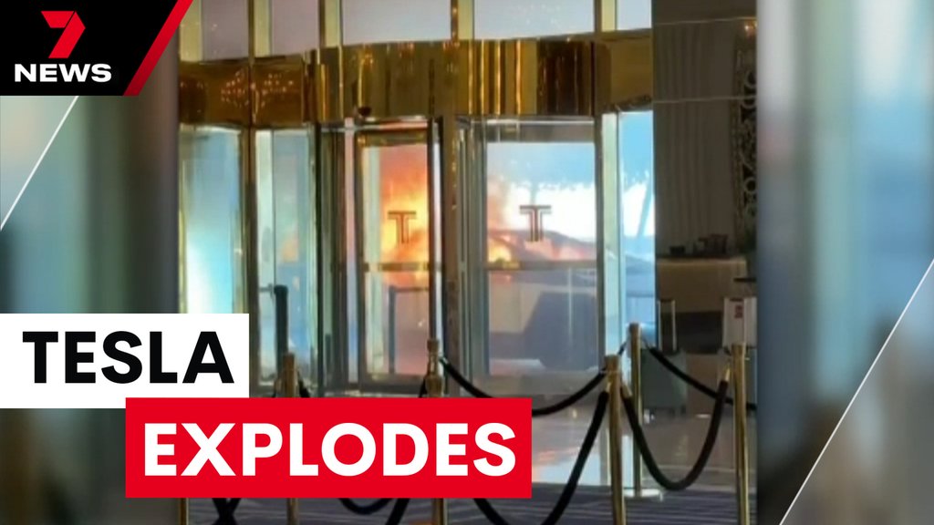 WATCH: Terrifying moment a Tesla Cybertruck explodes outside one of Donald Trump’s hotels, killing one person and injuring many bystanders in a suspected terror attack. WARNING GRAPHIC VISION
